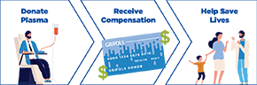 • Simply walk in, donate plasma, and your card will be automatically loaded with funds after each visit.